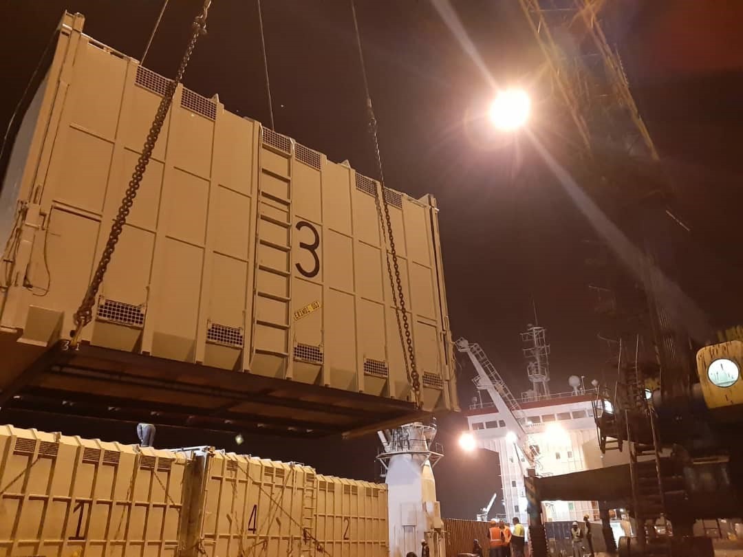Last night a family of six elephants comprising of two adults (bull and cow) and 4 calves were loaded at the Port of Walvis Bay on the El Nino vessel destined for a tourism Game Park in Kinshasa, Democratic Republic of Congo (DRC).